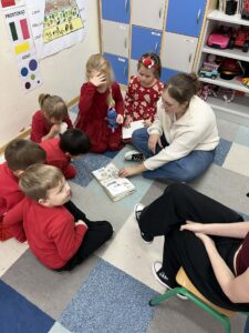 Z okazji Dnia Wolontariatu uczniowie należący do szkolnego wolontariatu odwiedzili grupy przedszkolne, aby przeczytać najmłodszym piękną bajkę o pomaganiu. Była to wyjątkowa okazja, aby porozmawiać z dziećmi o życzliwości, empatii i wzajemnym wsparciu.