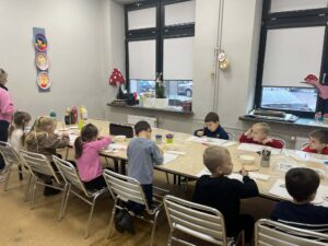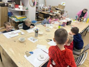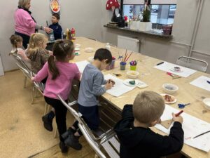 Po spektaklu przedszkolaki wzięły udział w warsztatach bożonarodzeniowych, podczas których z zaangażowaniem tworzyły świąteczne ozdoby. Była to doskonała okazja do rozwijania kreatywności i wprowadzenia się w magiczny, świąteczny nastrój.