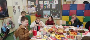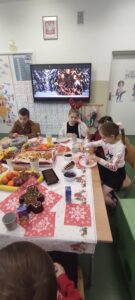 W klasach 1–3 odbyły się uroczyste wigilie klasowe, które wprowadziły uczniów w wyjątkowy, świąteczny nastrój. Był to czas wspólnego spotkania, rozmów, dzielenia się radością oraz kultywowania pięknych bożonarodzeniowych tradycji. Nie zabrakło świątecznych dekoracji, kolęd, serdecznych życzeń i uśmiechów, które stworzyły ciepłą, radosną atmosferę.