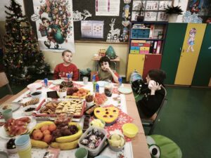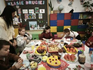 Serdecznie dziękujemy Rodzicom za zaangażowanie, pomoc w organizacji wigilii klasowych, przygotowanie poczęstunku oraz okazane wsparcie i życzliwość. Dzięki Państwa otwartości i współpracy dzieci mogły przeżyć ten czas w prawdziwie rodzinnej i świątecznej atmosferze.