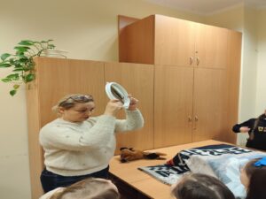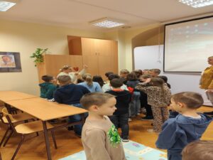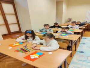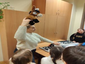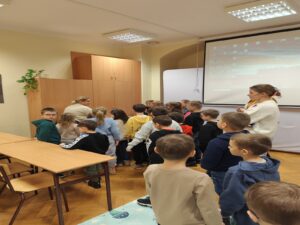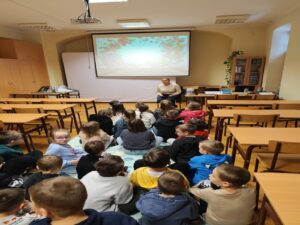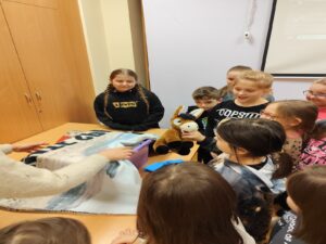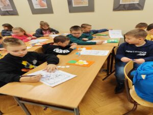 Dnia 13 stycznia uczniowie klas 1-3 naszej szkoły wzięli udział w wyjątkowej wycieczce do biblioteki, gdzie uczestniczyli w zajęciach pt. „Świat oczami dziecięcych bajek babci i dziadka”, prowadzonych z wykorzystaniem elementów bajkoterapii. Spotkanie miało na celu przybliżenie dzieciom wartości rodzinnych, w szczególności relacji z babcią i dziadkiem, a także rozwijanie wyobraźni i wrażliwości emocjonalnej.