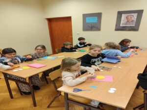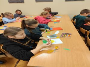 Kolejnym elementem spotkania było słuchanie wierszy poświęconych babciom i dziadkom, które wprowadziły ciepłą, pełną wzruszeń atmosferę. Na zakończenie odbyły się warsztaty plastyczne, podczas których dzieci z kół origami wykonały laurki z wizerunkiem babci lub dziadka według własnych pomysłów. Prace były niezwykle pomysłowe i pełne dziecięcej kreatywności.