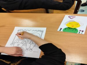 Zajęcia rozpoczęły się obejrzeniem krótkiego filmu o babci i dziadku, a następnie rozmową prowadzającej z dziećmi na temat czasu spędzanego z dziadkami. Uczniowie chętnie opowiadali, co lubią robić ze swoimi babciami i dziadkami, dzieląc się miłymi wspomnieniami i doświadczeniami. Następnie dzieci rozwiązywały zagadki dotyczące codziennych zajęć babci i dziadka, a także zagadki związane z dobrze znanymi bajkami. Dużym zainteresowaniem cieszyło się odgadywanie tytułów bajek na podstawie przygotowanych rekwizytów.