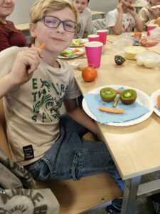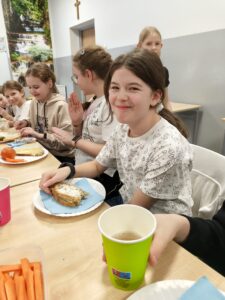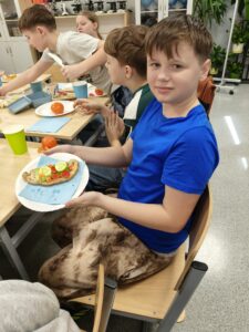 Na lekcji edukacji zdrowotnej uczniowie klasy 4 wzięli udział w praktycznych warsztatach kulinarnych, podczas których uczyli się przygotowywać zdrowe i zbilansowane drugie śniadania. Powstały kolorowe lunchboxy pełne wartościowych produktów, a także pomysły na szybkie i pożywne pierwsze śniadanie. Zajęcia miały na celu rozwijanie dobrych nawyków żywieniowych oraz pokazanie, że zdrowe jedzenie może być smaczne i proste do wykonania.