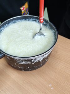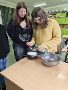 Drugim eksperymentem było tworzenie bioplastiku z mleka i octu. Uczniowie obserwowali, jak z białka mleka powstaje masa, którą można formować jak prawdziwe tworzywo. To świetny przykład, że natura potrafi dostarczyć własne, biodegradowalne rozwiązania.