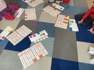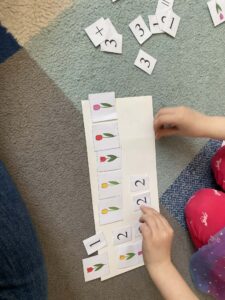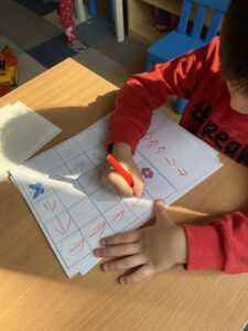 Nie zabrakło również ćwiczeń związanych z przeliczaniem – dzieci liczyły przedmioty, dopasowywały liczby do ilości oraz utrwalały znajomość cyfr.