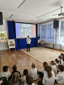 Uroczystość rozpoczęła się apelem przygotowanym przez uczniów klas IV–VI. Podczas występu uczniowie przybliżyli sylwetkę patrona, jego życie oraz twórczość, podkreślając znaczenie jego dorobku.